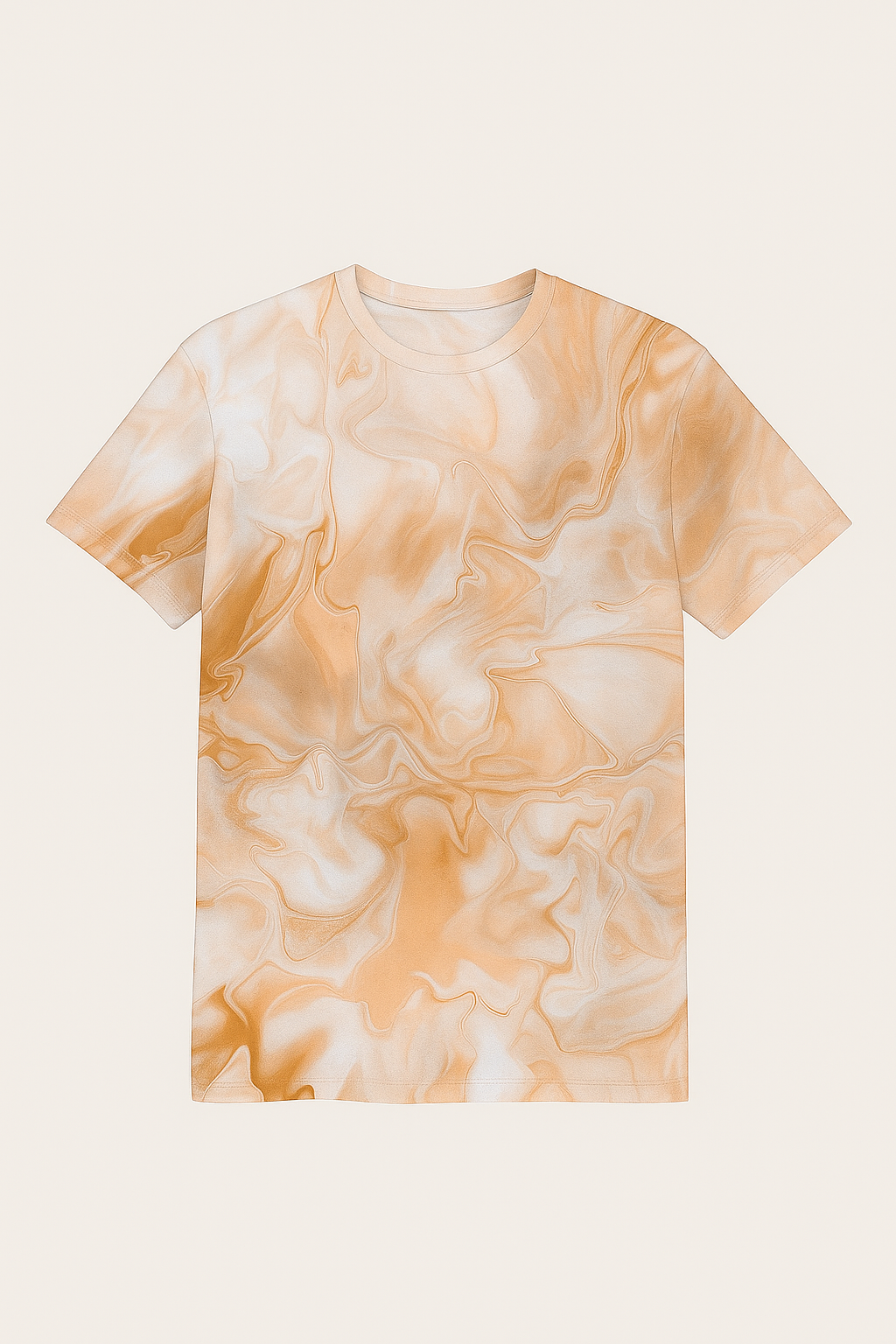 The Apricot Smoke T-Shirt embodies effortless elegance with its smooth marbled pattern in soft apricot and ivory tones. Designed for those who appreciate refined style, this piece exudes a calm, luxurious aesthetic.